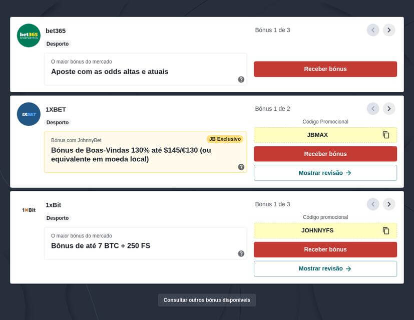 Confira abaixo as melhores casas de apostas para sua localização que provavelmente terão odds para o Mundial Feminino de 2027, assim que disponíveis. Cadastre-se com um cupom, como nosso Paripesa código promocional, e divirta-se!