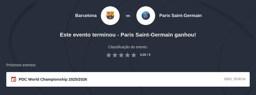Segundo as estatísticas Barcelona x Paris Saint-Germain em 2025/26, o Barcelona sofreu golos em dois dos seus três jogos; o PSG manteve a baliza a limpo em dois dos seus quatro jogos, mas sofreu pelo menos dois golos sempre que encontrou adversários mais exigentes (nomeadamente, Tottenham e Toulouse).
